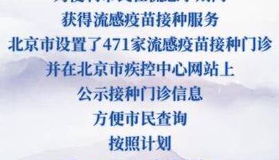 北京设置471家流感疫苗接种门诊 免费接种工作将于11月底结束