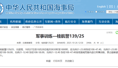 航行警告:北部湾部分海域进行军事训练