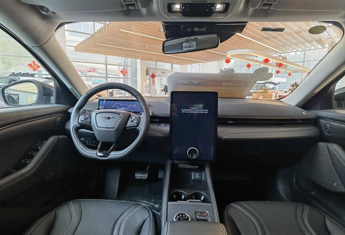 为了强化Mustang燃油级驾驶乐趣,福特电马还搭载了Mustang V8车型的模拟声浪,开起来应该很有劲吧!遗憾的是店门口这台(下图)准备用于试乘试驾的电马还没有上好牌照,这次无缘体验开电马的激情与乐趣。