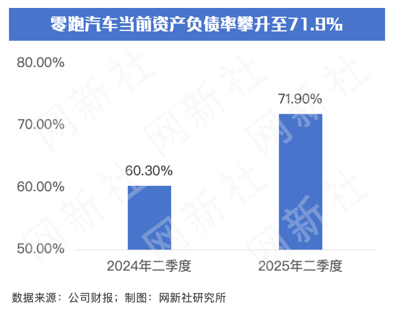 为了支撑高速扩张,公司的经营杠杆也在增加,资产负债率有所上升,截止2025年中,零跑负债率为71.9%,较去年同期增加了10个百分点。