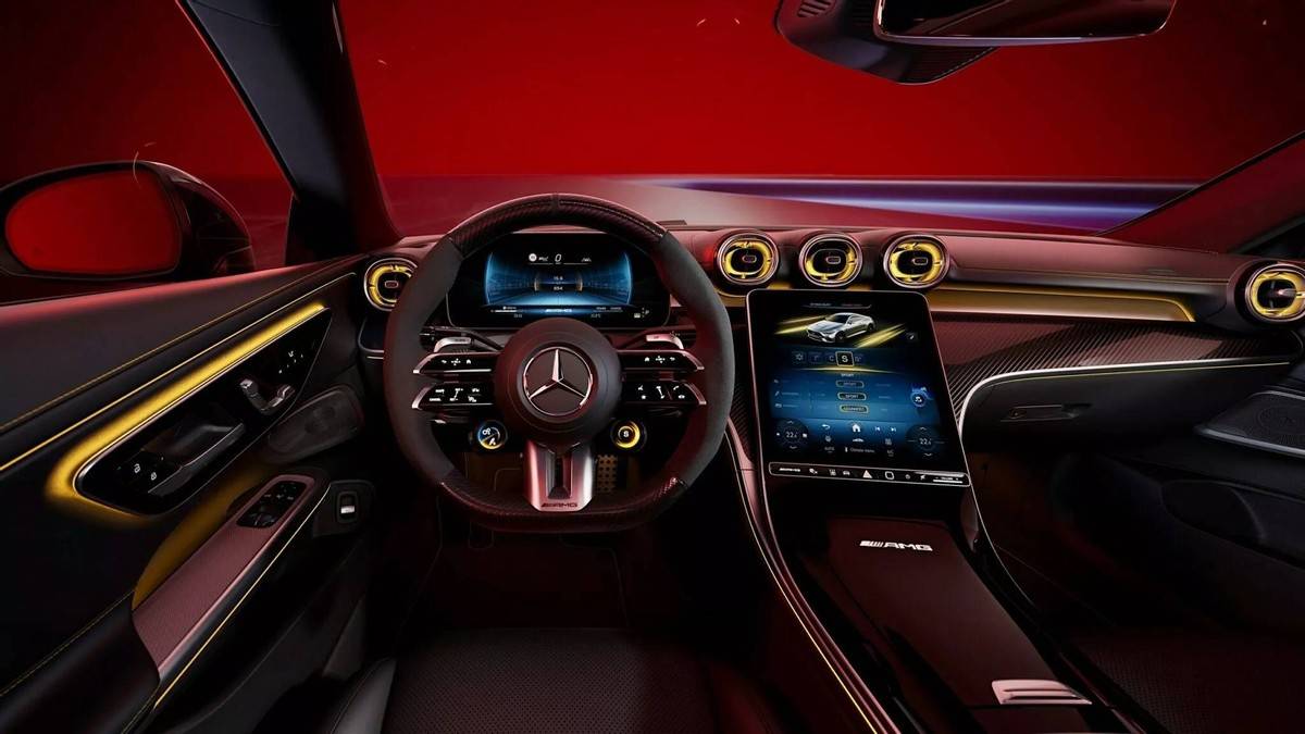 内饰布局没有大动干戈,还是那个以驾驶者为中心的老套路。AMG Performance方向盘肯定跑不了,碳纤维饰板和翻毛皮满眼都是,战斗氛围必须拉满。最新的MBUX系统针对AMG车型做了专属显示优化,TRACK PACE虚拟赛道工程师这种配置八成也会出现在选装清单里。说实话这一代C级的内饰底子本来就不差,现在把AMG该有的元素往上堆,效果不会差。