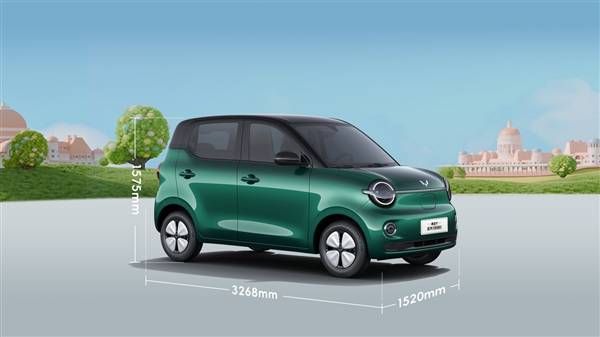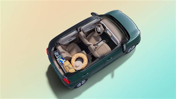 新车车身尺寸3268*1520*1575mm,转弯半径4.5米,采用四门四座设计,后排配备电动升降车窗,全车座舱拥有20处实用储物空间,后备厢最大可拓展至838L。