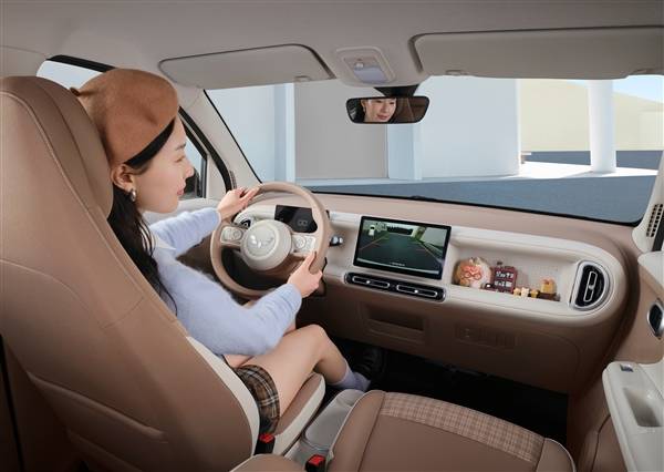 配备多功能方向盘,并使用电子怀档杆,10.1英寸中控屏采用全新萌趣UI设计,下滑即可打开控制中心使用高频功能,未来通过OTA可实现CarPlay、HiCar、CarLink三种手机互联方式。