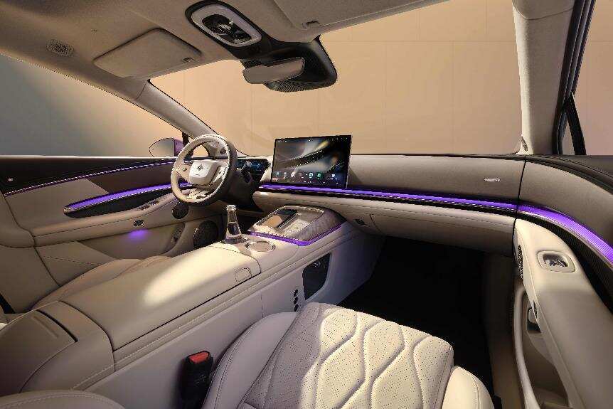 设计上,昊铂A800以独创美学塑造独特价值。全球首创三面式翻转大灯,联动智驾状态呈现丰富灯光表达;座舱采用前后双环抱布局,配备6536毫米月晕氛围灯带,营造沉浸式体验。30年花曲柳木饰板搭配超柔Nappa真皮,融合东方美学与现代科技;2+1变形座椅(带智慧中岛)、零重力副驾、机械按摩座椅、三温多控智能冰箱、悬浮式双层遮阳帘、23扬声器旗舰音响等配置,覆盖商务与家庭场景,让豪华更有温度。