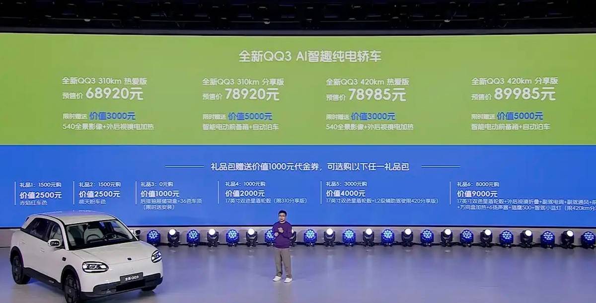 6.892万起,奇瑞QQ3 EV开启预售!猎鹰500辅助驾驶,续航420km