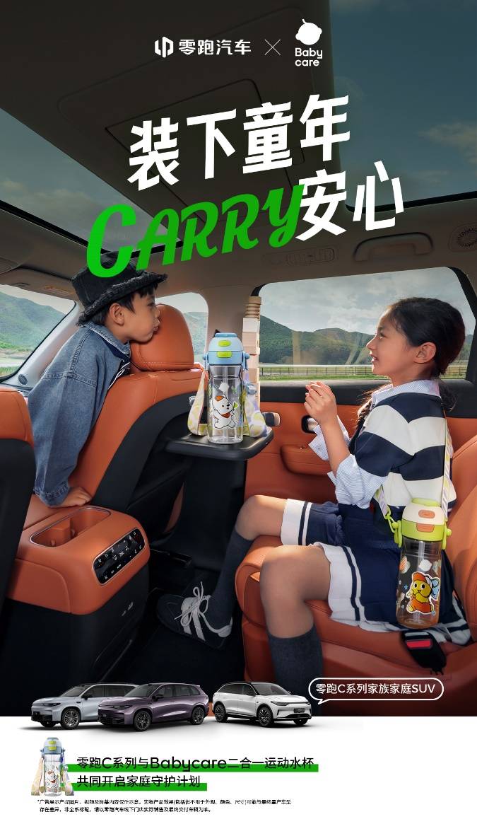 此次联名的儿童运动水杯,正是双方基于“家庭安全”这一共同价值所展开的首次合作。水杯产品融合了Babycare在母婴用品领域的专业设计与零跑C系列车型的家庭出行场景,打造“车内安心饮水、户外便捷携带”的全场景体验,进一步强化了零跑C系列“家庭友好型车型”的标签。