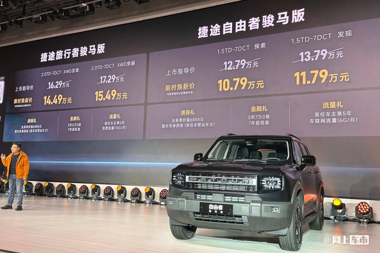 3月11日,捷途旅行者/自由者骏马版各带着2个版型上市。前者官方指导价16.29万元和17.29万元,限时焕新价14.49万元和15.49万元;后者官方指导价12.79万元和13.79万元,限时焕新价10.79万元和11.79万元。
